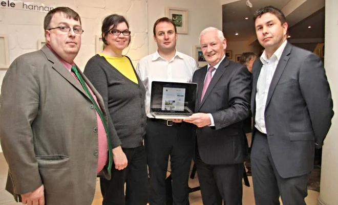 (l to r): Concubhar Ó LIatháin, CeangalG Marketing Manager, Claire Nic Neacail, Alasdair Morrison CeangalG Director, Dinny McGinley Fine Gael TD and Fionbar Ó Baoill – CeangalG Training Manager.
